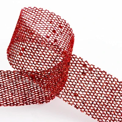 Red Open Mesh Glitter Ribbon Ribbon Width: 25mm Roll Length: 10M Supplied on a Roll