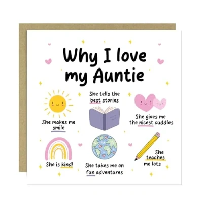 RED OCEAN Auntie Card Why I Love Birthday for Cute Her From Niece Nephew With Kraft Envelope Thank You