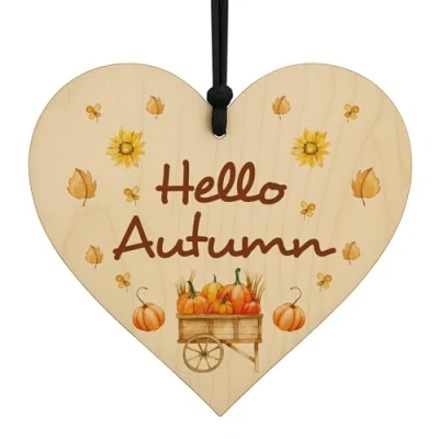 Hello Autumn wooden hanging heart - a charming seasonal decoration to welcome cosy autumn vibes into your home or garden. Suitable For: Autumn Decorations, Autumn Decor, Pumpkin Decorations, Seasonal Decor, Home Decor, Autumn Home Decor Beautiful handmade heart gift sign, crafted individually and printed professionally. The design is unique and made in house, you will only find this great gift from Red Ocean Gifts. We take pride if ensuring you have the best gift to give and to receive Heart Size: 100 x 100 mm (10 x 10 cm), gift packed with hanging cord included and made with high grade wood. The precision digital print will last a lifetime and can be hung indoors or outside. Also suitable for sticking or screwing to the wall. Will not fade in the sun. The highest quality to be treasured for years ahead. Each Red Ocean Sign is Handmade in England by our team of skilled gift makers, who pay attention to every last detail, ensuring that the gift you choose will amaze the recipient. Supplied ready to gift, the Plaque you choose includes it's hanging cord and is finnished in protective Red Ocean packaging.