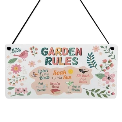 Check out this beautiful acrylic plaque which is printed with Garden rules. This sign will be the perfect decor piece to hang in your home or outside in the Garden! Suitable For: Garden Rules Sign, Garden Sign, Shed Sign, Garden Plaque, Garden Accessories, Summer House Signs, Welcome Signs For Garden, Garden Shed Sign, Garden Signs For Outdoor, Gardener Gifts, Gifts For Women This 20cm x 10cm plaque is handmade in the UK from high-quality 3mm white acrylic. The product is cut and printed with your chosen design and packed ready to gift. Each plaque comes with black string for easy hanging on walls, hooks, or decorative displays, perfect for adding a sentimental touch to any room in the home. Designed to be weather-resistant, this plaque holds up well in outdoor areas, making it a thoughtful addition to patios, balconies, garden sheds, or even summerhouses, as well as interior spaces like kitchens, bedrooms, or workspaces. Beautifully packaged and ready to gift, this plaque makes a heartfelt present for a friend or family member to hang up in their home or in their Garden with a message that they would love to read every day!