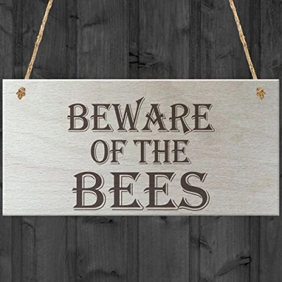 RED OCEAN Beware Of The Bees Novelty Wooden Hanging Shabby Chic Plaque Bee Sign Gift