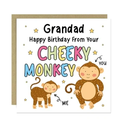 RED OCEAN Birthday Card For Grandad From Your Cheeky Monkey Funny Cards Envelope Included Granddaughter Grandson Joke Humour