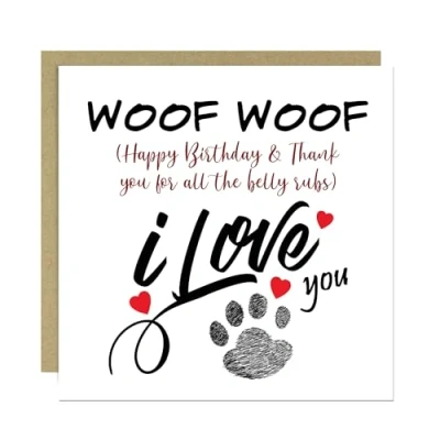 RED OCEAN Birthday Card From The Dog, Woof Happy For Dog Mum Dad, Funny Owner, 14x14 With Envelope Included
