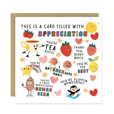 A beautiful handmade square card with a brown craft envelope included, beautifully printed and carefully packaged, making it the perfect card to give to your friends / family or partner to celebrate the special occasion! Suitable For: Thank You Card, Teacher Cards, Appreciation Card, Leaving School Card, Leaving Nursery Card, Teacher Card, Friend Card, Best Friend Card Beautiful handmade card, crafted individually and printed professionally. The design is unique and made in house from the design to the manufacturing and packaging of the card, you will only find this great gift from Red Ocean Gifts. We take pride if ensuring you have the best gift to give and to receive. Greetings Card Size: 14.5x14.5cm (145mmx145mm), Brown Craft Envelope included (Square 15cm Envelope), Quality 350gsm Matte Card, Blank on the Inside so you can add your own written message, Beautiful pop of colour that will stand out. Each Red Ocean Card is Handmade in England by our team of skilled gift makers, who pay attention to every last detail, ensuring that the gift you choose will amaze the recipient. Supplied ready to gift, the Greetings Card you choose includes an envelope and is finished in protective Red Ocean packaging.