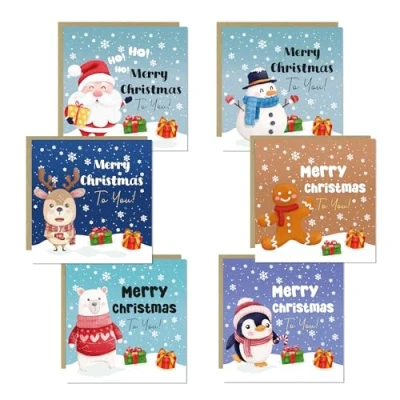 RED OCEAN Christmas Card Multipack For Kids Children Merry Cards School Teachers Friends or Family 145x145mm With Kraft Envelopes