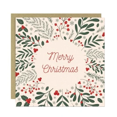 RED OCEAN Christmas Greetings Card For Friends and Family Floral Merry Him Her 145x145mm With Kraft Envelope Festive Seasonal Xmas Cards