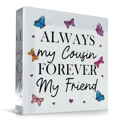 Check out this beautiful acrylic plaque which would be a brilliant gift for your Cousin to let them know how much you love them! Suitable For: Cousin Gift, Cousin Gifts, Friendship Gift, Gift For Her, Gift For Him, Cousin Birthday Gift, Cousin Christmas Gift Beautiful handmade plaque, crafted individually and printed professionally. The design is unique and made in house, you will only find this great gift from Red Ocean Gifts. We take pride if ensuring you have the best gift to give! Plaque Size: 100x100 mm (10 x 10 cm). Our plaques are made out high quality clear acrylic and is printed on. The plaque will last a lifetime and be loved forever! Each Red Ocean Sign is Handmade in England by our team of skilled gift makers, who pay attention to every last detail, ensuring that the gift you choose will amaze the recipient. Supplied ready to gift!