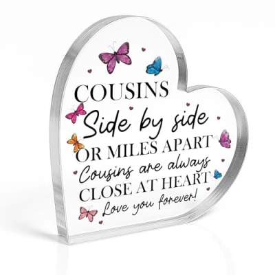 Check out this beautiful acrylic plaque which would be a brilliant gift for your Cousin to let them know how much you love them! Suitable For: Cousin Gift, Cousin Gifts, Friendship Gift, Gift For Her, Gift For Him, Cousin Birthday Gift, Cousin Christmas Gift Beautiful handmade plaque, crafted individually and printed professionally. The design is unique and made in house, you will only find this great gift from Red Ocean Gifts. We take pride if ensuring you have the best gift to give! Plaque Size: 100x100 mm (10 x 10 cm). Our plaques are made out high quality clear acrylic and is printed on. The plaque will last a lifetime and be loved forever! Each Red Ocean Sign is Handmade in England by our team of skilled gift makers, who pay attention to every last detail, ensuring that the gift you choose will amaze the recipient. Supplied ready to gift!
