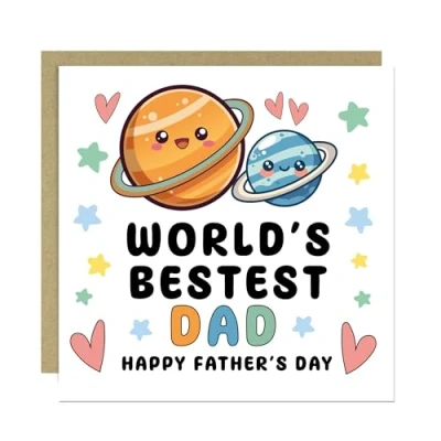RED OCEAN Fathers Day Card For Dad Worlds Best From Daughter Son 145x145mm With Kraft Envelope Novelty Happy Father's Cards Father Daddy