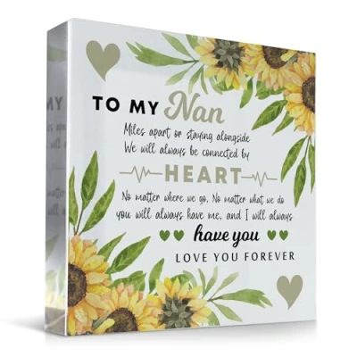 Check out this beautiful acrylic plaque which would be a brilliant gift for your Nan to let her know how much you love her on her Birthday, Christmas or any time of the year! Suitable For: Nan Gift, Nan Birthday Gift, Nan Christmas Gift, Gift For Nan, From Granddaughter, From Grandson, From Kid, Thank You Nan Gift, Nan Plaque, Nan Gift Idea Beautiful handmade plaque, crafted individually and printed professionally. The design is unique and made in house, you will only find this great gift from Red Ocean Gifts. We take pride if ensuring you have the best gift to give! Plaque Size: 100x100 mm (10 x 10 cm). Our plaques are made out high quality clear acrylic and is printed on. The plaque will last a lifetime and be loved forever! Each Red Ocean Sign is Handmade in England by our team of skilled gift makers, who pay attention to every last detail, ensuring that the gift you choose will amaze the recipient. Supplied ready to gift!