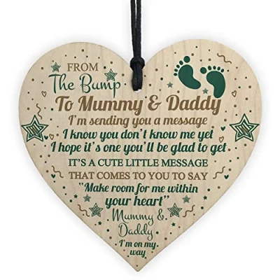 Amazon Wooden Heart Size: 10 x 10 cm (approx) Suitable as: Mummy To Be Gifts, Daddy To Be Gifts, From Bump Gifts, Baby Shower Gift Style: Rustic / Shabby Chic Material: Certified Wood Made in England