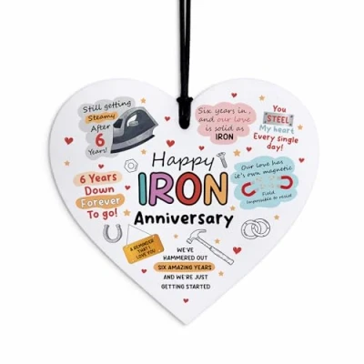 Red Ocean Funny 6th Anniversary Iron For Husband Wife Couple Her Him Acrylic Hanging Heart Romantic Present
