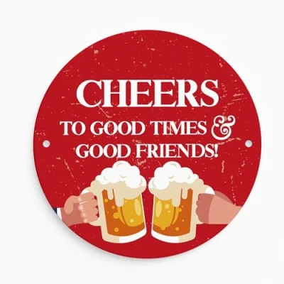 Red Ocean Funny Bar Signs For Outside Round Wall Plaque CHEERS Sign Garden Shed Man Cave Garage Alcohol Gift Men Women Plaques And Home