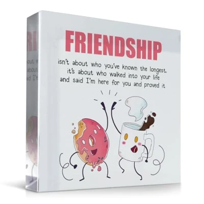 This Friendship Acrylic Plaque will be a lovely gift for a friend for their Birthday/Christmas this year. The perfect gift to let them know how much you love them! Suitable For: Friendship Gift, Friendship Plaque, Best Friend Gift, Best Friend Birthday Gift, Best Friend Christmas Gift, Christmas Gift For Friend Beautiful handmade plaque, crafted individually and printed professionally. The design is unique and made in house, you will only find this great gift from Red Ocean Gifts. We take pride if ensuring you have the best gift to give! Plaque Size: 100x100 mm (10 x 10 cm). Our plaques are made out high quality clear acrylic and is printed on. The plaque will last a lifetime and be loved forever! Each Red Ocean Sign is Handmade in England by our team of skilled gift makers, who pay attention to every last detail, ensuring that the gift you choose will amaze the recipient. Supplied ready to gift!