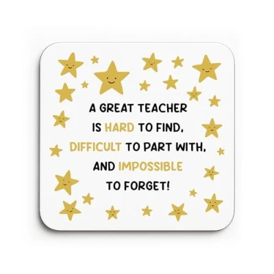 A beautiful handmade coaster, beautifully sublimated and carefully packaged, making it the perfect gift to give to your Teacher to say thank you and to let them know how special they are! Suitable For: Thank You Gift, Teacher Gift, Appreciation Gift, Leaving Gift, Leaving Nursery Gift, Teacher Coaster, Gift For Women, Gift For Men Beautifully crafted with a high gloss white front and solid wooden back, this 9cm x 9cm coaster combines modern elegance with everyday practicality. The smooth wooden base adds a natural, premium feel while protecting surfaces from heat, moisture, and scratches. Your chosen design is applied using sublimation printing, which permanently bonds the artwork into the glossy surface. This ensures a vibrant, sharp finish that won't peel, fade, or scratch, making it ideal for daily use and long lasting memories. Perfect Gift for Any Occasion - A thoughtful and versatile gift for a Thank You Gift, Leaving Gift or just because, ideal for bringing a smile to someone's day.