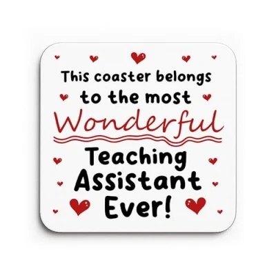 A beautiful handmade coaster, beautifully sublimated and carefully packaged, making it the perfect gift to give to your Teaching Assistant to say thank you and to let them know how special they are! Suitable For: Thank You Gift, Teacher Gift, Teaching Assistant Gift, Appreciation Gift, Leaving Gift, Leaving Nursery Gift, Teacher Coaster, Gift For Women, Gift For Men Beautifully crafted with a high gloss white front and solid wooden back, this 9cm x 9cm coaster combines modern elegance with everyday practicality. The smooth wooden base adds a natural, premium feel while protecting surfaces from heat, moisture, and scratches. Your chosen design is applied using sublimation printing, which permanently bonds the artwork into the glossy surface. This ensures a vibrant, sharp finish that won't peel, fade, or scratch, making it ideal for daily use and long lasting memories. A thoughtful and meaningful gift for a Teacher to say thank you. Each coaster is handmade to order with your custom design, making it a unique keepsake. It arrives beautifully presented and ready to gift.