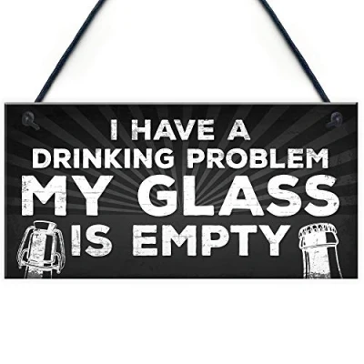 RED OCEAN GLASS IS EMPTY Funny Alcohol Sign Bar Pub Man Cave Hanging Wall Door Plaque BEER VODKA GIN GIFTS