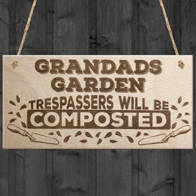 RED OCEAN Grandads Garden Trespassers Composted Novelty Wooden Hanging Plaque Gift Sign