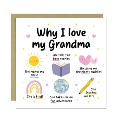 RED OCEAN Grandma Card Why I Love Birthday for Cute Her From Granddaughter Grandson With Kraft Envelope Thank You