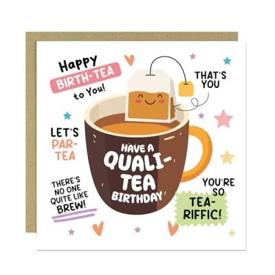 RED OCEAN Happy Birthday Card For Best Friend Colleague Funny Him Her QUALTI TEA With Kraft Envelope Novelty