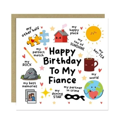 RED OCEAN Happy Birthday To My Fiance Card With Kraft Envelope Funny For Boyfriend Girlfriend Novelty Him Her Best Friend