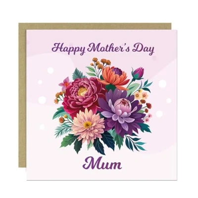 RED OCEAN Happy Mothers Day Mum Card, Card From Daughter Son, Floral For Her, Lovely Message With Envelope