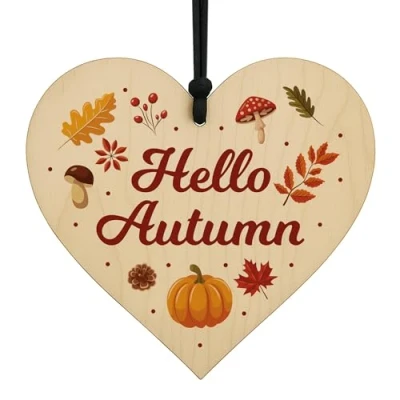 Hello Autumn wooden hanging heart - a charming seasonal decoration to welcome cosy autumn vibes into your home or garden. Suitable For: Autumn Decorations, Autumn Decor, Pumpkin Decorations, Seasonal Decor, Home Decor, Autumn Home Decor Beautiful handmade heart gift sign, crafted individually and printed professionally. The design is unique and made in house, you will only find this great gift from Red Ocean Gifts. We take pride if ensuring you have the best gift to give and to receive Heart Size: 100 x 100 mm (10 x 10 cm), gift packed with hanging cord included and made with high grade wood. The precision digital print will last a lifetime and can be hung indoors or outside. Also suitable for sticking or screwing to the wall. Will not fade in the sun. The highest quality to be treasured for years ahead. Each Red Ocean Sign is Handmade in England by our team of skilled gift makers, who pay attention to every last detail, ensuring that the gift you choose will amaze the recipient. Supplied ready to gift, the Plaque you choose includes it's hanging cord and is finnished in protective Red Ocean packaging.