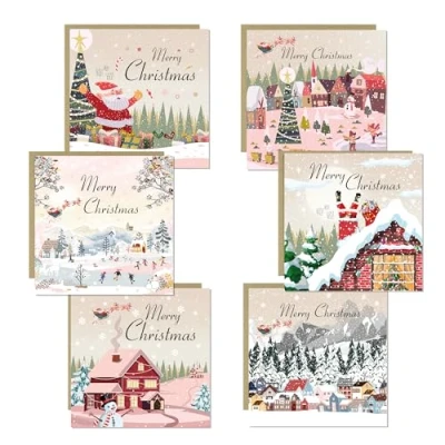 RED OCEAN Merry Christmas Card Pack of 6 Multipack Xmas Cards For Friends Family Colleagues Teachers 145x145mm With Kraft Envelope Kids Children Men Women