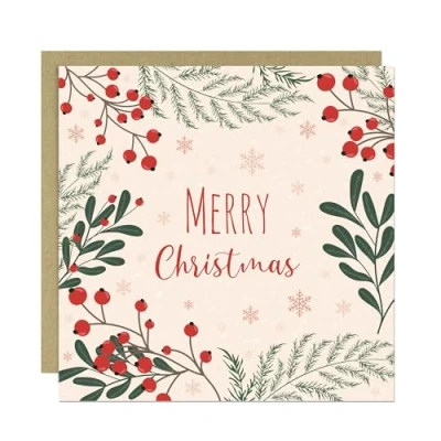 RED OCEAN Merry Christmas Greetings Card For Family and Friends 145x145mm With Kraft Envelope Xmas Cards Him Her Men Women Colleagues Neighbours
