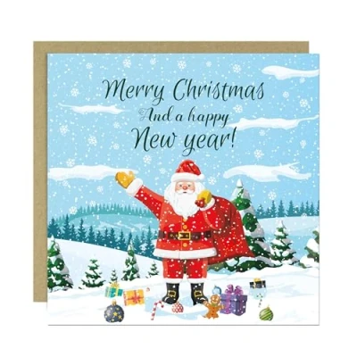 RED OCEAN Merry Christmas Happy New Year Card For Friends and Family 145x145mm Santa Cards Colleagues Teachers Neighbours Xmas