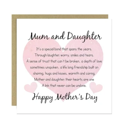 A beautiful handmade square card with a brown craft envelope included, beautifully printed and carefully packaged, making it the perfect card to give to your friends / family or partner to celebrate the special occasion! Suitable For: Mothers Day Card, Card For Mothers Day, Mum Card, Mother Daughter Card, Card For Mother, Card For Her, Mum Poem Card Beautiful handmade card, crafted individually and printed professionally. The design is unique and made in house from the design to the manufacturing and packaging of the card, you will only find this great gift from Red Ocean Gifts. We take pride if ensuring you have the best gift to give and to receive. Greetings Card Size: 14.5x14.5cm (145mmx145mm), Brown Craft Envelope included (Square 15cm Envelope), Quality 350gsm Matte Card, Blank on the Inside so you can add your own written message, Beautiful pop of colour that will stand out. Each Red Ocean Card is Handmade in England by our team of skilled gift makers, who pay attention to every last detail, ensuring that the gift you choose will amaze the recipient. Supplied ready to gift, the Greetings Card you choose includes an envelope and is finished in protective Red Ocean packaging.