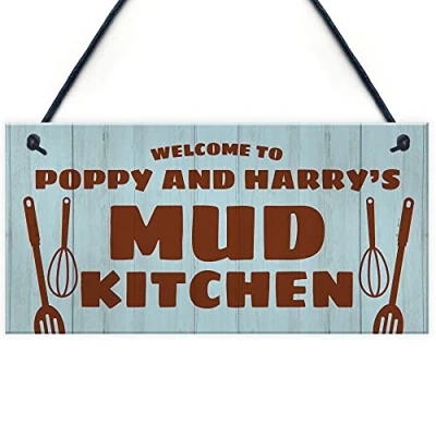 Plaque Size: 200x 100 mm (Approx) Suitable For: Mud Kitchen Signs, Play House Signs, Garden Signs, Kitchen Signs Beautiful handmade sign, crafted individually and printed professionally. The design is unique and made in house, you will only find this great gift from Red Ocean Gifts. We take pride if ensuring you have the best gift to give and to receive Plaque Size: 200 x 100 mm (20 x 10 cm), gift packed with hanging cord included, 5mm thick high grade PVC, precision digital print, hang indoors or outside. Also suitable for sticking or screwing to the wall. Will not fade in the sun. The highest qual Each Red Ocean Sign is Handmade in England by our team of skilled gift makers, who pay attention to every last detail, ensuring that the gift you choose will amaze the recipient. Supplied ready to gift, the Plaque you choose includes it's hanging cor