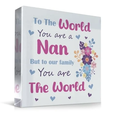 Check out this beautiful acrylic plaque which would be a brilliant gift for your Nan to let her know how much you love her on her Birthday, Christmas or any time of the year! Suitable For: Nan Gift, Nan Birthday Gift, Nan Christmas Gift, Gift For Nan, From Granddaughter, From Grandson, From Kid, Thank You Nan Gift, Nan Plaque, Nan Gift Idea Beautiful handmade plaque, crafted individually and printed professionally. The design is unique and made in house, you will only find this great gift from Red Ocean Gifts. We take pride if ensuring you have the best gift to give! Plaque Size: 100x100 mm (10 x 10 cm). Our plaques are made out high quality clear acrylic and is printed on. The plaque will last a lifetime and be loved forever! Each Red Ocean Sign is Handmade in England by our team of skilled gift makers, who pay attention to every last detail, ensuring that the gift you choose will amaze the recipient. Supplied ready to gift!