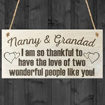 Red Ocean Nanny & Grandad I Am So Thankful To Have The Love Of Two Wonderful People Like You Thank Wooden Hanging Plaque Grandparents Gift Sign