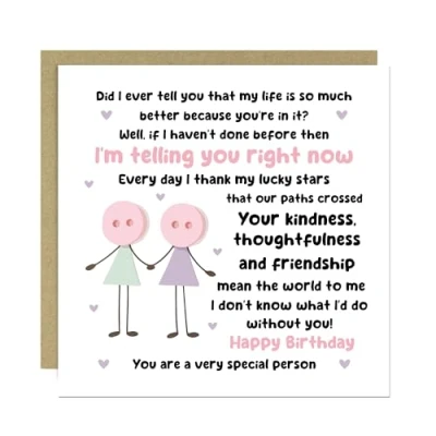 RED OCEAN Novelty Card For Best Friend Birthday With Kraft Envelope Bestie BFF To Say Thank You Women Girls Her