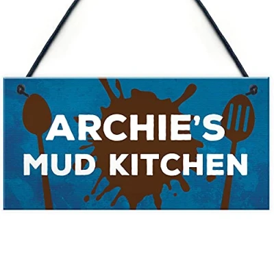 RED OCEAN Personalised Hanging Mud Kitchen Sign For Garden Play House Gift Kids Children