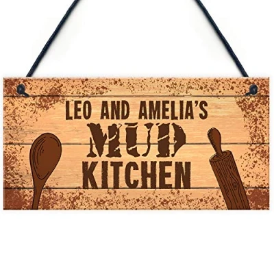 RED OCEAN Personalised Kids Name Mud Kitchen Hanging Sign Garden Play Area Toy Gift