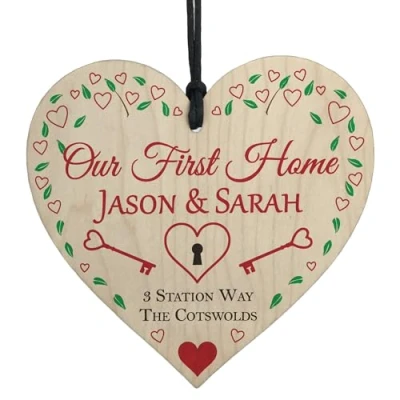RED OCEAN Personalised Our First Home House Warming Wood Hanging Plaque Couples Gift Address Sign