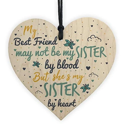 RED OCEAN Sister By Heart Best FRIEND Wooden Christmas Friendship Birthday Plaque Keepsake