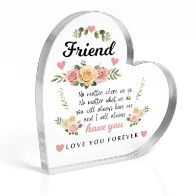 Check out this beautiful acrylic heart will be a lovely gift to wish your Friend a Happy Birthday or Happy Christmas and to let her know how much she is loved! Suitable For: Best Friend Gifts, Birthday Gift, Bestie Gifts, Gift For Bestie, Bestie Gift Christmas, Gift From Friend, Friendship Gift, Thank You Gift, Best Friend Plaque Beautiful handmade plaque, crafted individually and printed professionally. The design is unique and made in house, you will only find this great gift from Red Ocean Gifts. We take pride if ensuring you have the best gift to give! Plaque Size: 100x100 mm (10 x 10 cm). Our plaques are made out high quality clear acrylic and is printed on. The plaque will last a lifetime and be loved forever! Each Red Ocean Sign is Handmade in England by our team of skilled gift makers, who pay attention to every last detail, ensuring that the gift you choose will amaze the recipient. Supplied ready to gift!
