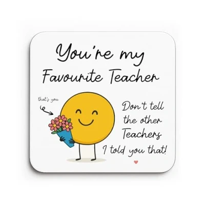Red Ocean Thank You Gift For Teacher Funny Favourite Coaster From Student Kids Leaving School Nursery Appreciation Keepsake