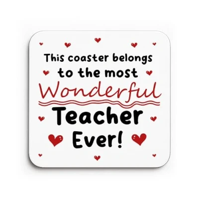 A beautiful handmade coaster, beautifully sublimated and carefully packaged, making it the perfect gift to give to your Teacher to say thank you and to let them know how special they are! Suitable For: Thank You Gift, Teacher Gift, Appreciation Gift, Leaving Gift, Leaving Nursery Gift, Teacher Coaster, Gift For Women, Gift For Men Beautifully crafted with a high gloss white front and solid wooden back, this 9cm x 9cm coaster combines modern elegance with everyday practicality. The smooth wooden base adds a natural, premium feel while protecting surfaces from heat, moisture, and scratches. Your chosen design is applied using sublimation printing, which permanently bonds the artwork into the glossy surface. This ensures a vibrant, sharp finish that won't peel, fade, or scratch, making it ideal for daily use and long lasting memories. A thoughtful and meaningful gift for a Teacher to say thank you. Each coaster is handmade to order with your custom design, making it a unique keepsake. It arrives beautifully presented and ready to gift.