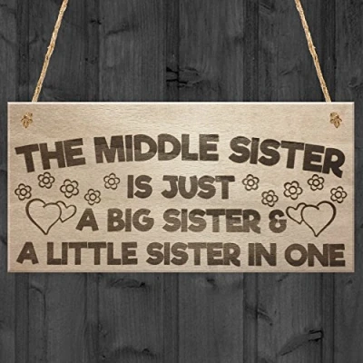 RED OCEAN The Middle Sister Big & Little Hanging Wooden Plaque Love Sign Cute Sisters Gift