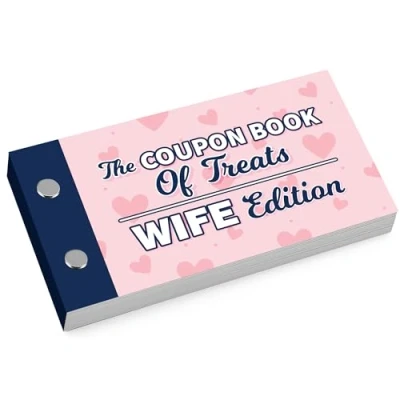 FOR YOUR WIFE - Our Wife Edition Coupon Book provides 38 coupons that she can use that are guaranteed to excite & surprise. Looking for some fun with your girlfriend? With our Wife Edition Coupon Cards, you won't struggle to have a bit of fun when your Wife pulls out one of these coupons and requests his favourite meal to be cooked! Our love coupon books would make a great gift on it's own or alongside our wide range of cards/wooden hearts. We have a gift for everyone and all occassions! But these coupon books are AMAZING for Valentines Day, as an Anniversary Gift, A Birthday Gift Idea or Christmas Gift. Your boyfriend/girlfriend/husband/wife will love this novelty gift. Check out our other coupon books if you want more fun coupons! TREAT YOUR PARTNER - Treat your partner to fun experiences with our Wife Edition Coupon Book. The book comes packaged, ready to gift to your boyfriend, girlfriend, husband or wife. Enjoy date night in a completely new way because you don't know what's going to come next but we are going to tell you! Have control over your date night too as you can rip out each coupon whenever you like and hand it to your partner! PERFECT FOR EVERY OCCASION - The Perfect gift for Valentine's Day, a Birthday, or stuck on what to get for your Anniversary, these charming set of coupons will make a thoughtful gift for that special somone. The date night coupons are a perfect way to add some romance into your relationship. A thoughtful and fun gift for your Boyfriend, Girlfriend, Husband, Wife! All our Coupon Books are handmade by our Gift Makers, ensuring that you have to best gift to give and to receive. This coupon book is made from high quality card and is made to last, so will last all of your date nights!