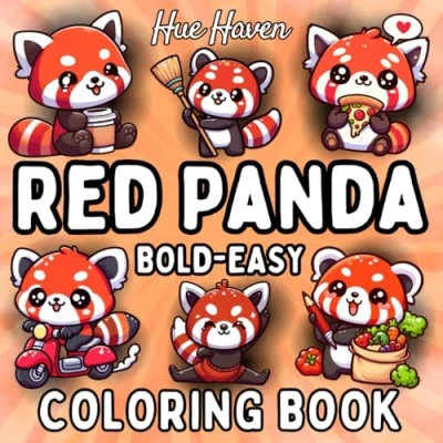 Red panda: Easy and Bold Coloring Book for Kids Adults: Simple Stress Relief Designs of Cute Pandas.