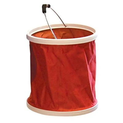 What a great idea - a folding bucket. Perfect where space is tight perhaps on a boat, in a caravan or just in the shed. Folds down to just 35mm thick and supplied with a handy storage bag Opens up to hold 11-litres Strong robust handle.