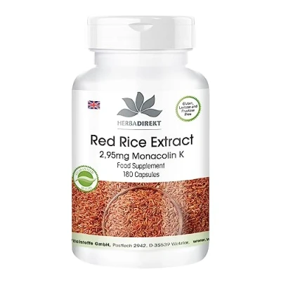 Red Yeast Rice Extract 600mg, Contains 2,95mg monacolin K, Vegan, 180 Capsules HERBADIREKT by Warnke Vitalstoffe German Pharmacy Quality