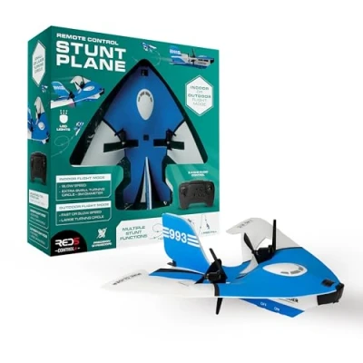 AmazonUSB Rechargeable Battery Powered Ultra Lightweight Trick Performing Stunt Airplane with 2.4Ghz Remote Control Designed for Manoeuvrability and Made of Strong Microcellular Polypropylene (MPP) Weighing Only 18 Grams Push Button Function to Change Between Slow and Steady Indoor and Speedy Fair Weather Outdoor Control Makes an Ideal Stocking Filler Type Gift for Older Kids, Teens and Adults Wanting to Perform Aerial Tricks at Home Stunt Plane Measures Around 22 cm by 19 cm by 7 cm | Recommended for Ages 8+ | Do Not Use in Strong Winds Rechargeable Battery Charges Via Included Micro USB Cable | Remote Control Requires 3 AA Batteries (Not Included)