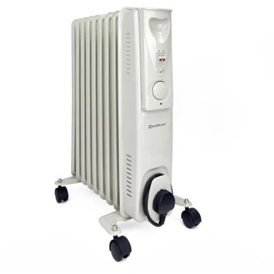 Introducing our efficient oil-filled radiator, perfect for keeping your space warm and cozy. With 9 fins for optimal heat distribution, it provides quick and even warmth. Customise your comfort with variable heat settings and an adjustable thermostat. This compact, lightweight, and portable unit is ideal for large room sizes. Operating at 2000W, it features rapid heat convection technology and automatic overheat protection for safety. Enjoy long-lasting warmth as the heated oil maintains its temperature even when switched off. Plus, it includes convenient cord storage. 9 Fin Heat Release provides efficient heat distribution. 2000W power is ideal for large room sizes. Variable Heat Settings to suit your comfort needs. Adjustable Thermostat for precise temperature control. Temperature Control Thermostat keeps your room at precisely your set temperature. Compact and Portable, smooth castors easy to move. Rapid Heat Convection Technology ensures fast and even heat distribution. Automatic