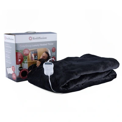General description Snuggle up in ultimate warmth and luxury with the CosySnug Luxury Heated Throw in a stylish black color. Generously sized at 160 x 120 cm, this throw is crafted from a blend of soft flannel and plush teddy fleece, wrapping you in cozy comfort while adding a touch of elegance to your home. Whether you’re curling up on the couch or adding an extra layer of warmth to your bed, the CosySnug Luxury Heated Throw transforms any space into a cozy retreat, combining elegance, warmth, and practicality for cold winter nights or anytime you need a little extra comfort. Technical specifications Dimensions: 160 x 120 cm Power consumption: 120W Heat-up time: 5 minutes Heat settings: 10 Timer: 1-10 hours Other information Integrated overheating protection system Detachable controls for easy washing Machine washable at 40°C LED control display for easy use Equipped with a BS plug